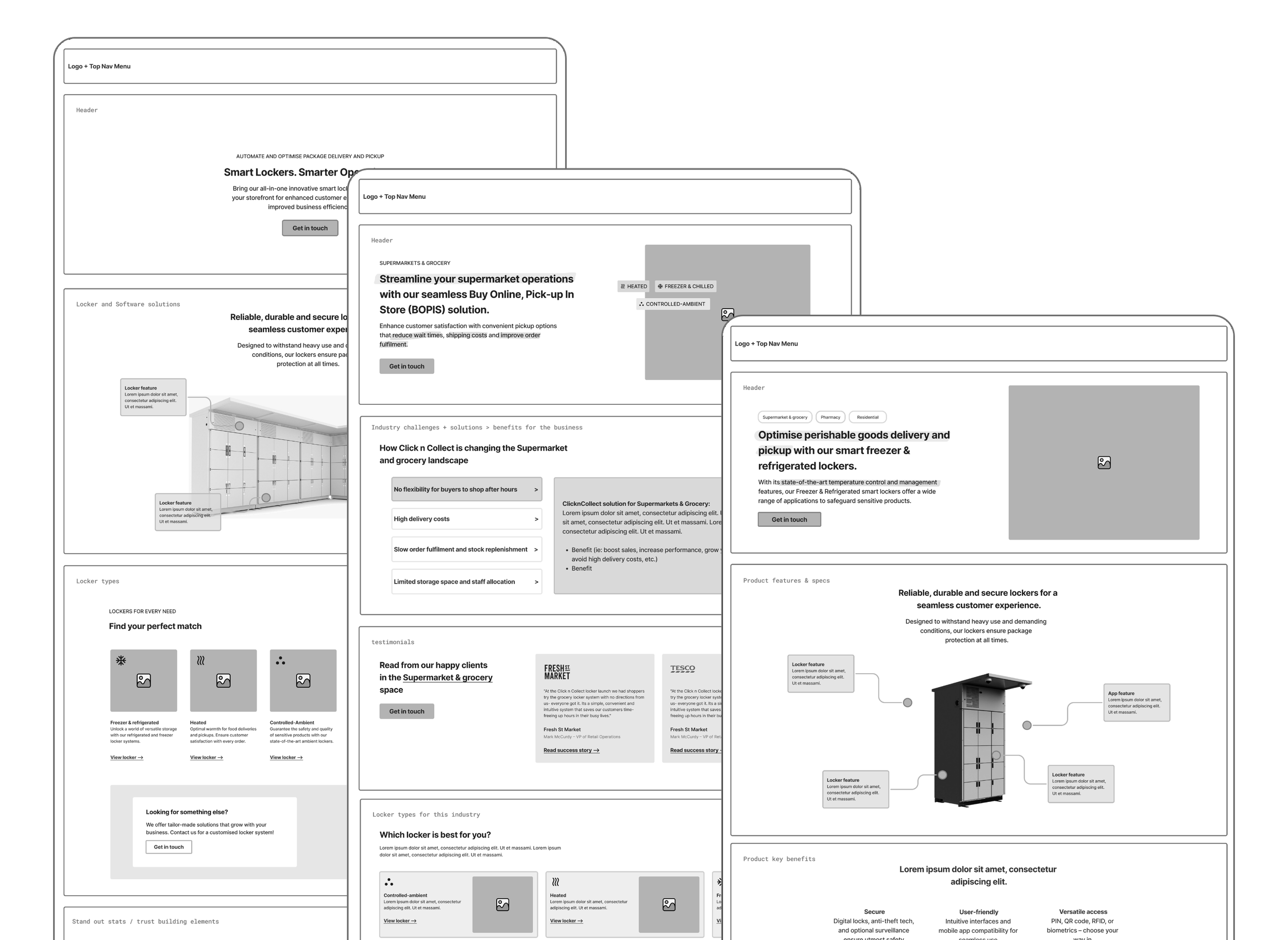 Once that was established, I moved on to create the low-fidelity wireframes in parallel with the content structure and SEO strategy.